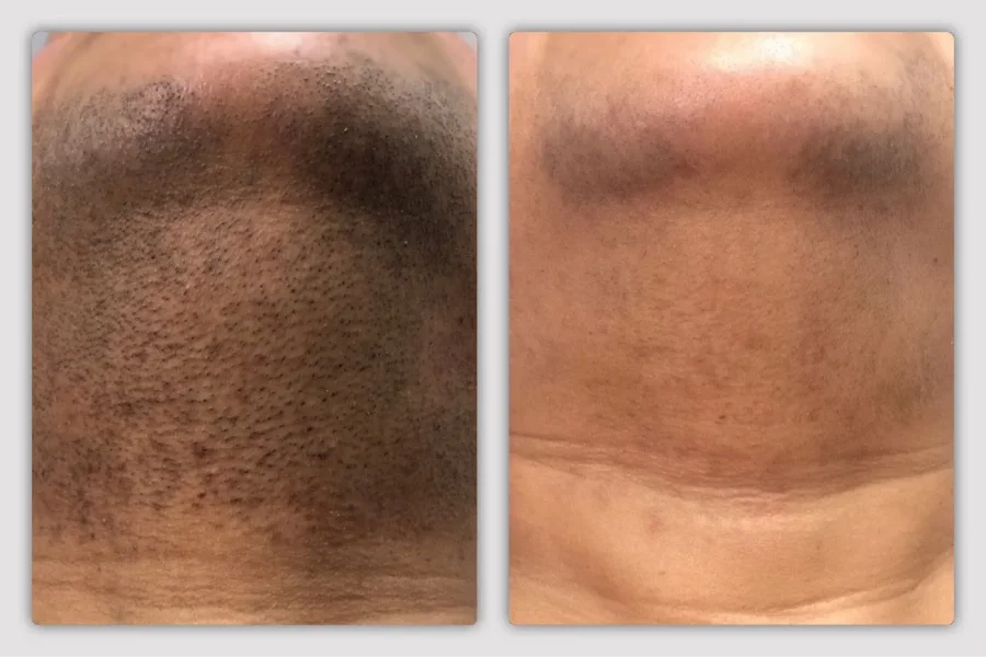 You may notice a reduction in hair growth after the first session, but full results typically develop after 6-8 sessions as the hair follicles become weaker over time.
